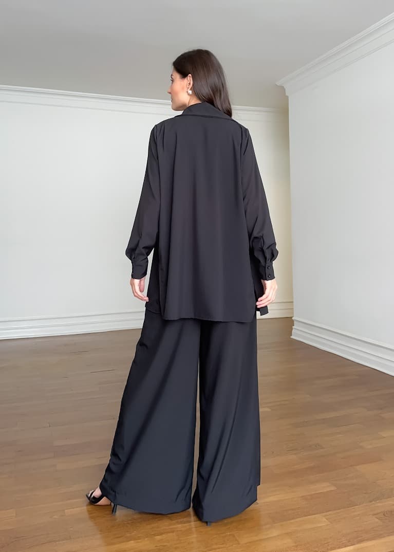 CAMISA TURMALINA estilo alfaiataria confeccionada com tecido Salinas, de caimento leve e fluido e que não amassa com facilidade. Com fechamento em botões, tanto na parte frontal, quanto nos punhos. Abertura nas laterais e comprimento mais alongado, uma terceira peça extremamente versátil. Podendo ser usada inclusive como saída de praia.