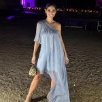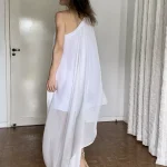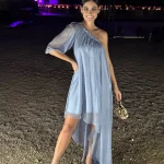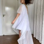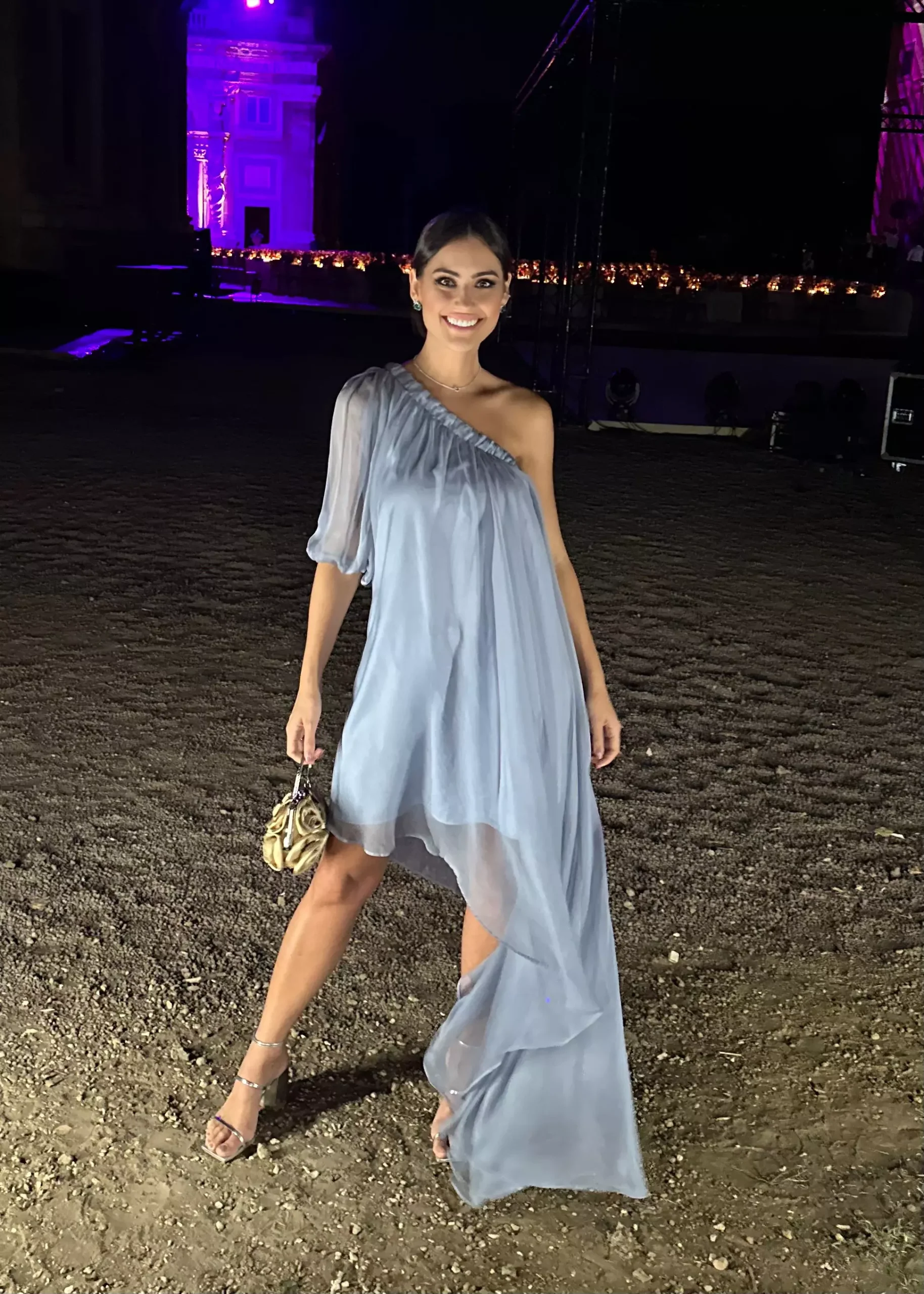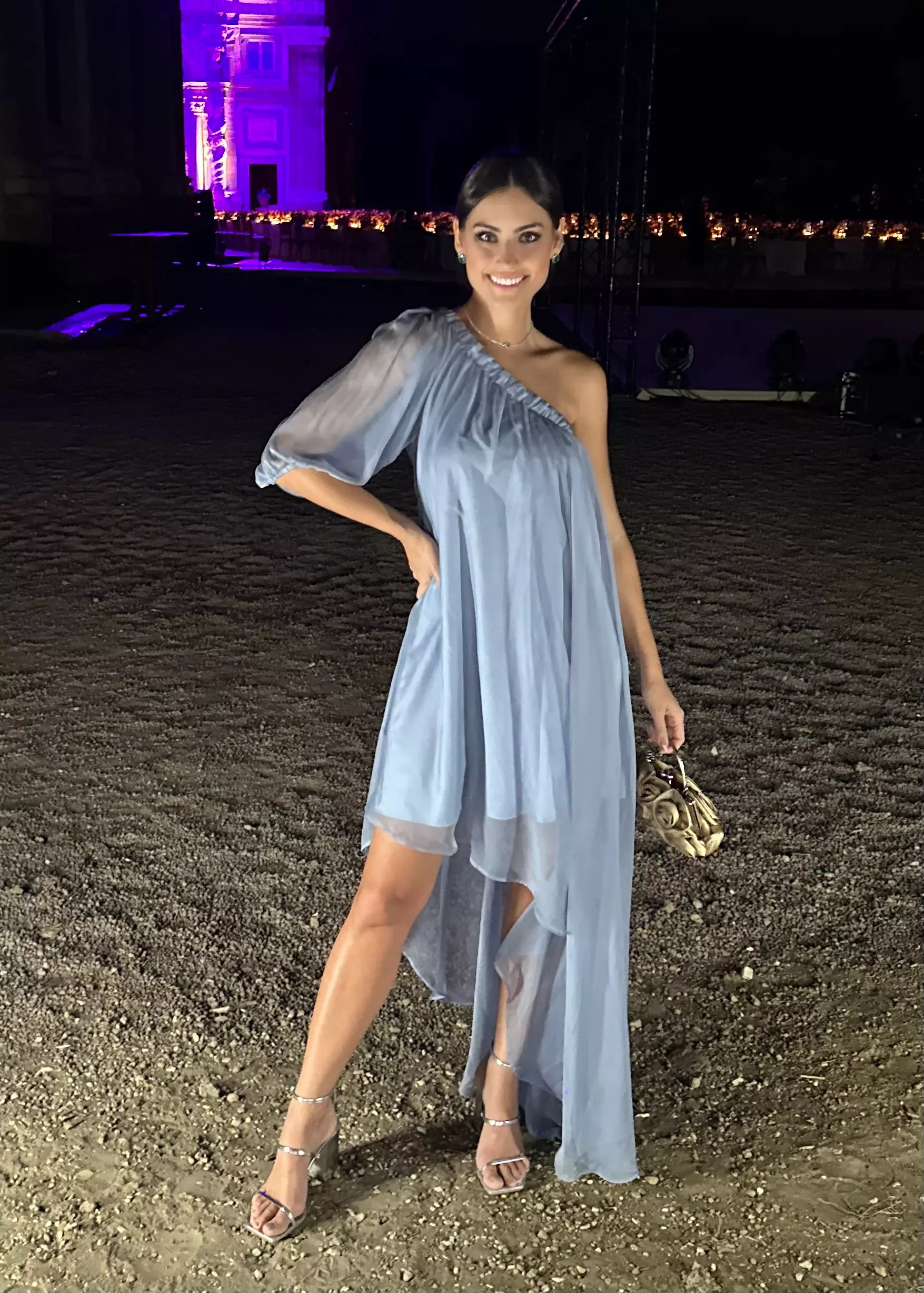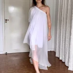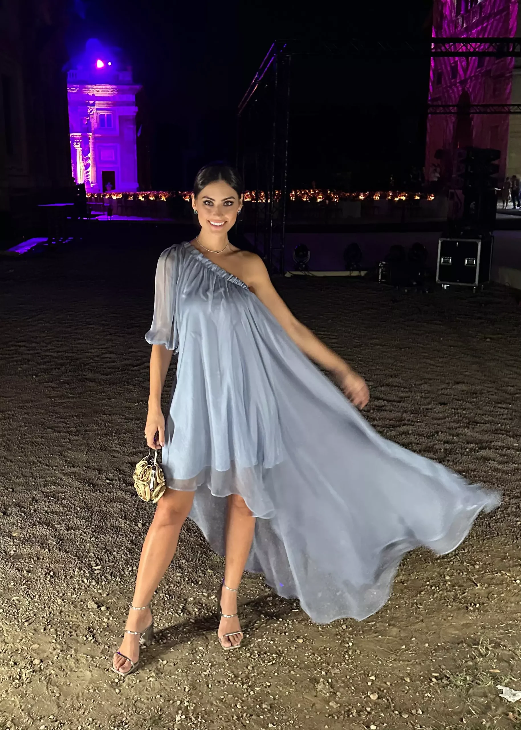 VESTIDO VENEZA é confeccionado em Gazar toque de seda, com transparência, toque macio e caimento muito fluido. Vestido assimétrico com manga bufante e elástico, de um ombro só, elástico na parte superior para maior sustentação. Design diferenciado por se tratar de um vestido curto, mas ao mesmo tempo logo, possibilitando assim ser usado em diversas ocasiões. Uma peça fácil para vestir, extremamente leve, elegante e feminina.